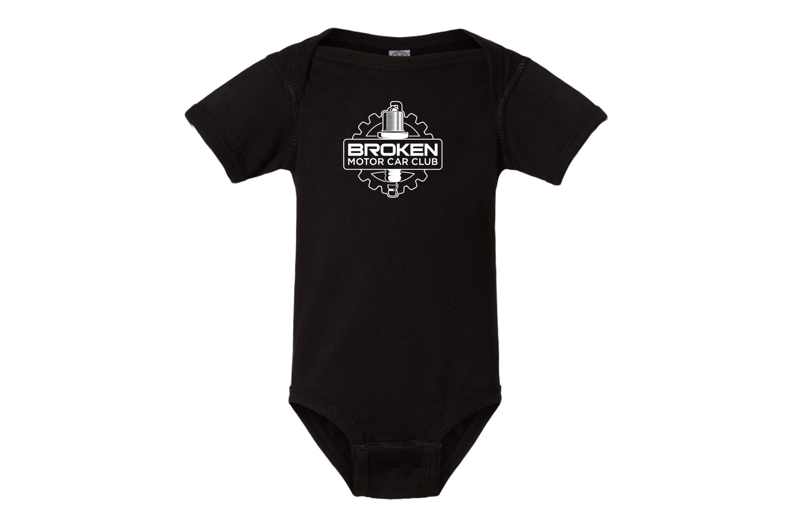 Double-needle stitched ribbed binding on lap shoulder neck, shoulders, sleeves and leg opening nnovative three-snap closure