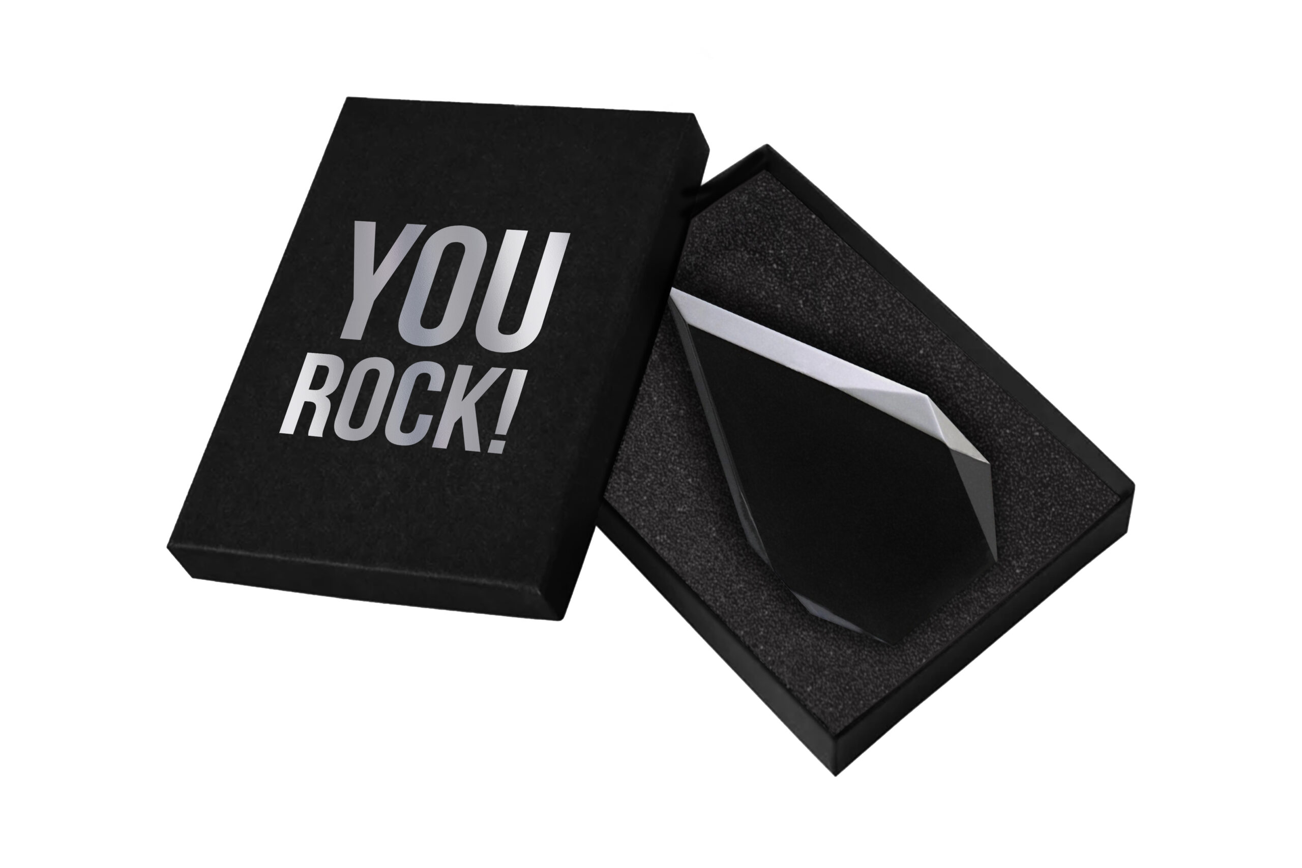 This award is a contemporary style, while it is clear, the back is silk screened black, making it anything but boring! The black accents create depth in this 1″ thick acrylic award. Each award is individually gift boxed. Custom engraving of the first and last name, team name and award category.